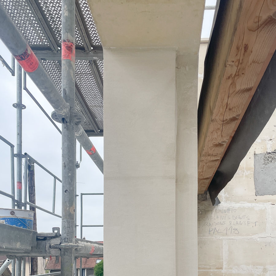 L'équipe parisienne s'est rendue sur le chantier de réhabilitation de la mairie de Conflans-Sainte-Honorine, l'occasion d'observer de près la mise en œuvre de la pierre massive issue des carrières de Vassens (pierre de Vassens) et de Fontaines-sur-Marne (pierre de Savonnières).
