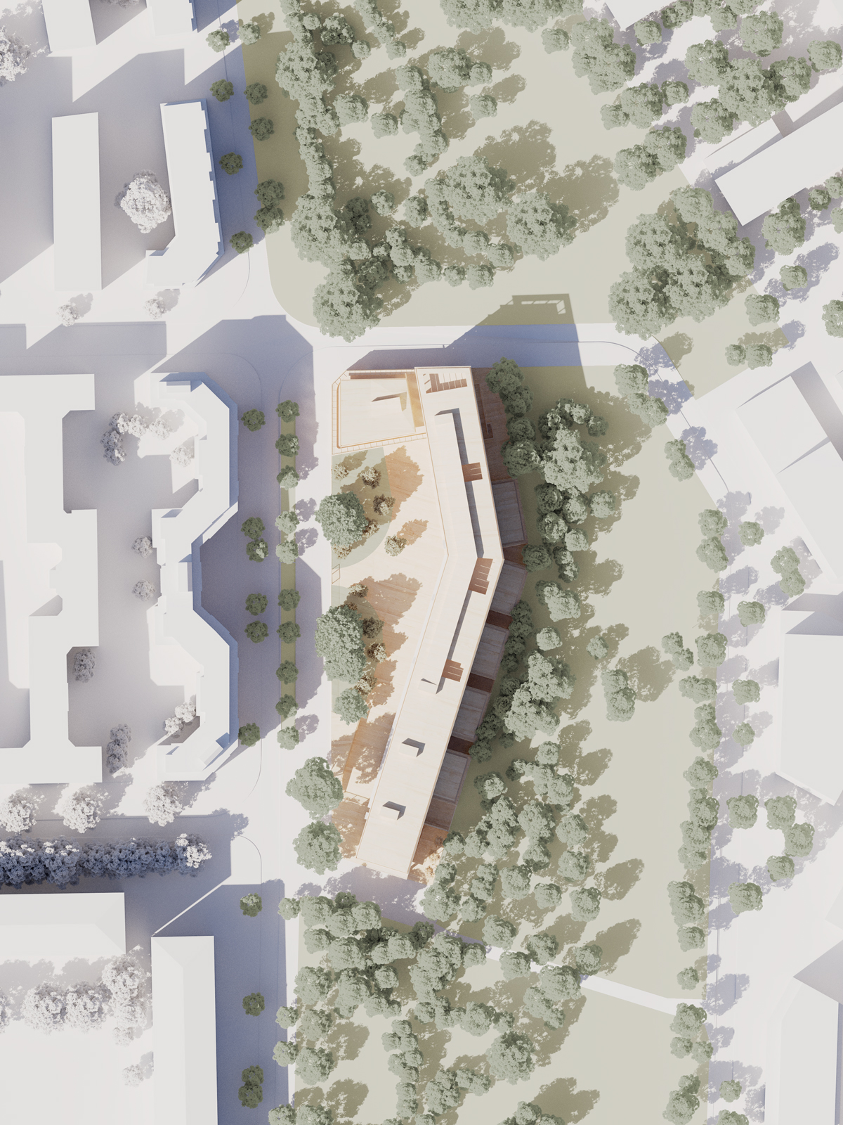 Maquette-fragment de la surélévation, entre logements et crèche © AJB