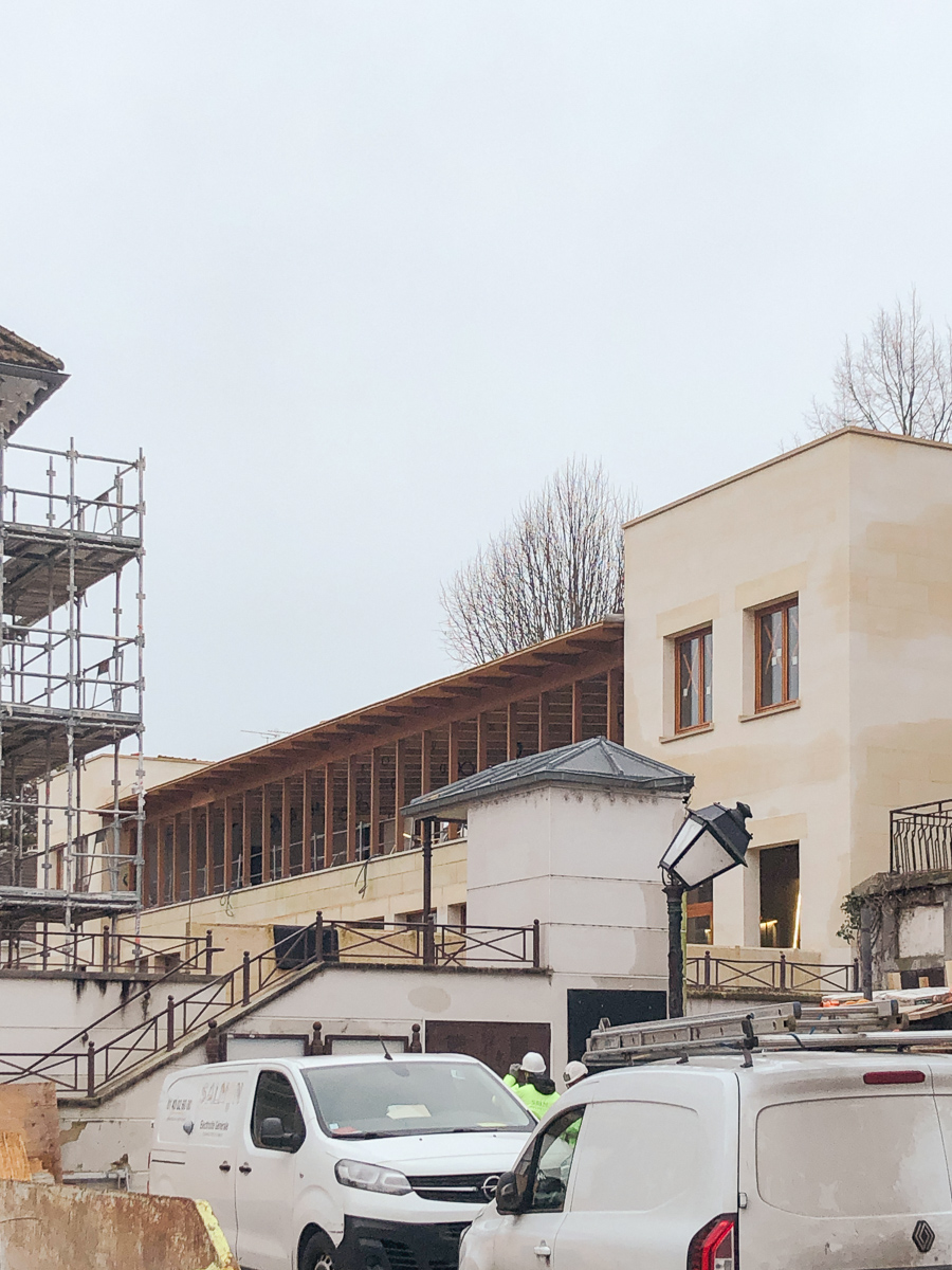Le chantier de la mairie de Conflans-Sainte-Honorine continue, avec la livraison du bâtiment A en partie rénové, et l'extension dont les murs maçonnés sont désormais tous dressés.