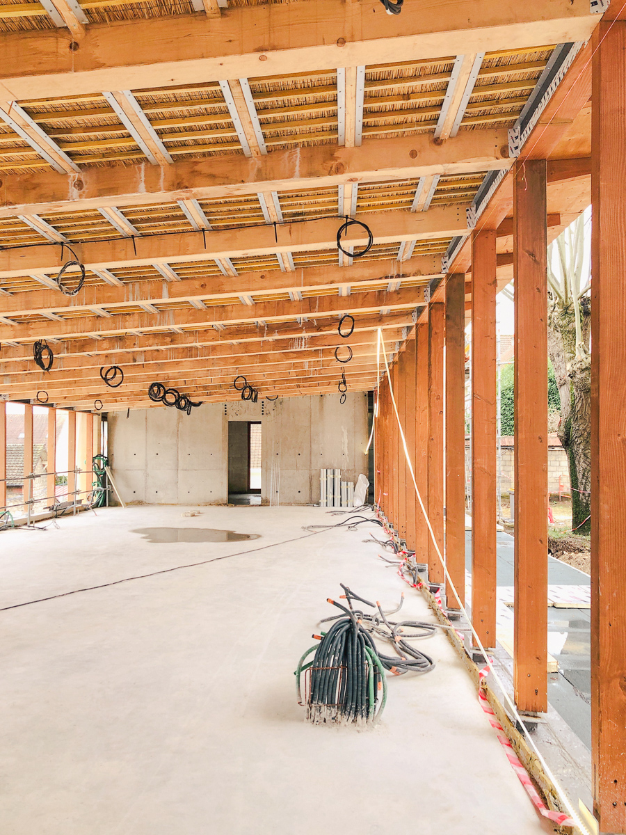 Le chantier de réhabilitation et extension de la Maison du Combattant de Voiron, futur atelier isérois, a débuté par la resuivi de la toiture et sa consolidation, puis la dépose du mur maçonné de la façade méridionale pour y accueillir la greffe de la future extension.